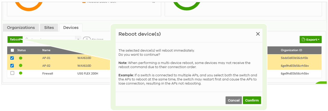 - Reboot button is greyed-out when one or more selected device is offline
