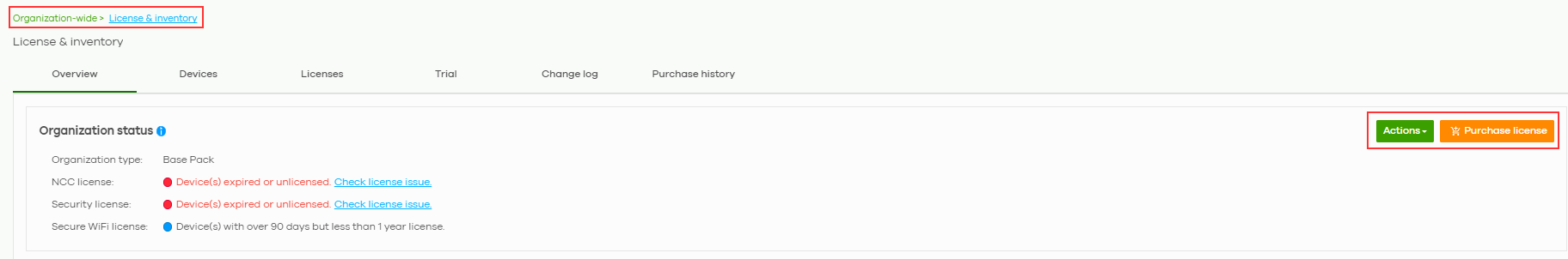 - Click on Actions -> Upgrade organization - To update the organization if the license has already been purchased
