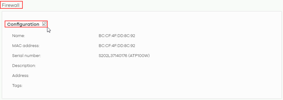 - On the device page under "Configuration", click on the " pen sheet" icon