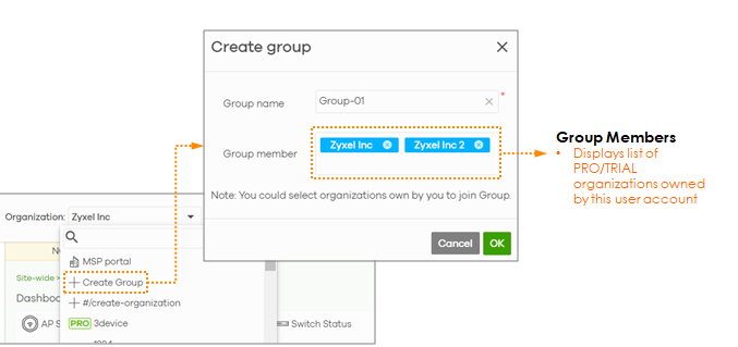 - If the expired organization is removed from the group list by the user, the user cannot add the organization back to the group list until the Pro Pack status is renewed