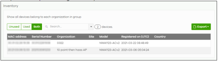 Shows all devices in the organizations of a selected group.