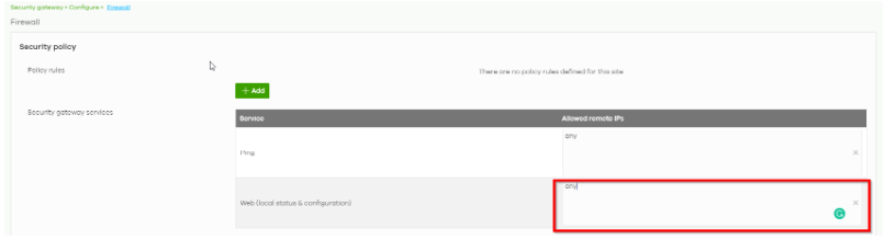 - Allow the device to respond to HTTPS & SSH service from WAN-Side (in this case, we select "any).