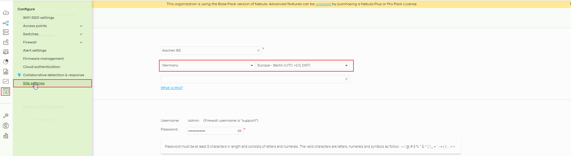 Setting up general time zone settings in the Nebula Control Center