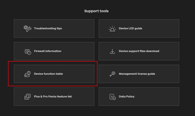 Help Center > Device Function Table