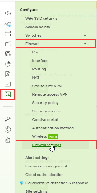 Navigate to the Site-wide -> Configure -> Firewall -> Firewall settings