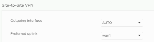 Configuring a Site-to-Site VPN has never been easier. The Site-to-Site VPN menu starts with WAN interface configuration. You may choose a single WAN interface as outgoing or leave the option as auto to provide redundancy. In that case, you will be asked which interface should be preferred.