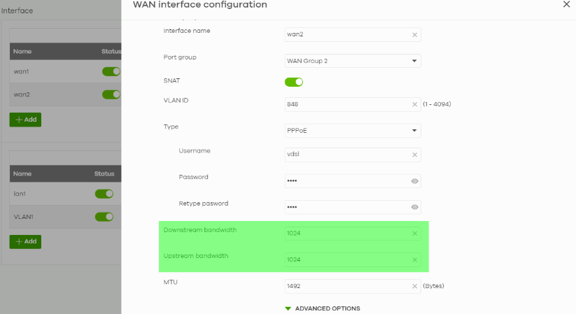 In case you have one of WAN interfaces which you want to use only as a last resort backup due to data plan limitations for example, you may designate such interface as a backup interface. With this setting, the interface will not be used, unless all other WAN interfaces are unavailable.