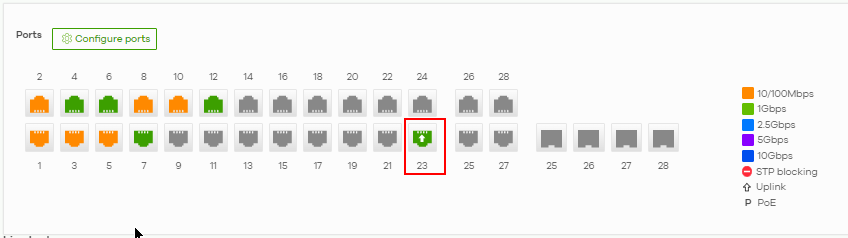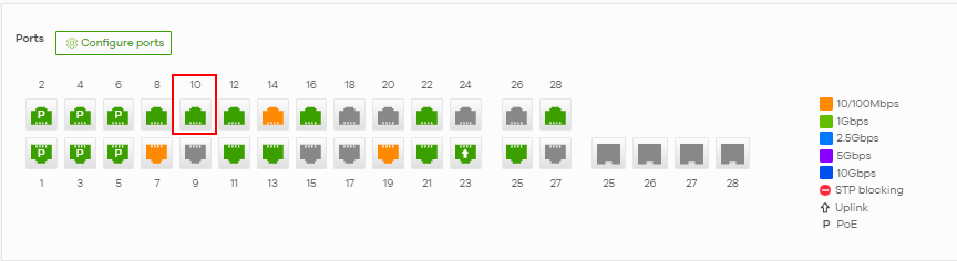 If we look at SW2, we can see that port 10 is not an uplink port, and is connected to one single device.