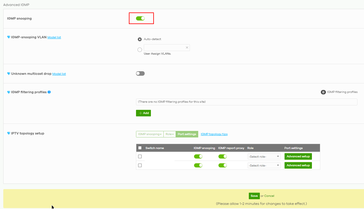 Enable IGMP snooping with the switch on the top.