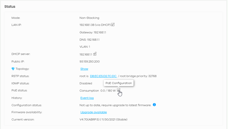 In some of our previously released switch series, customers encountered issues with PoE delivery of the switch to the clients. In most cases, the reason for this was the PoE Mode setting - it was set to Classification while Consumption mode was needed.