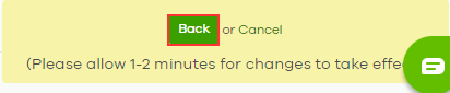 - After making all changes, click "Back" and click "Save" for all changes to take effect.