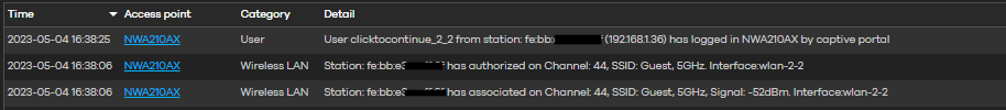 In the logs, it says that the user has used ClickToContinue to log in via the captive portal