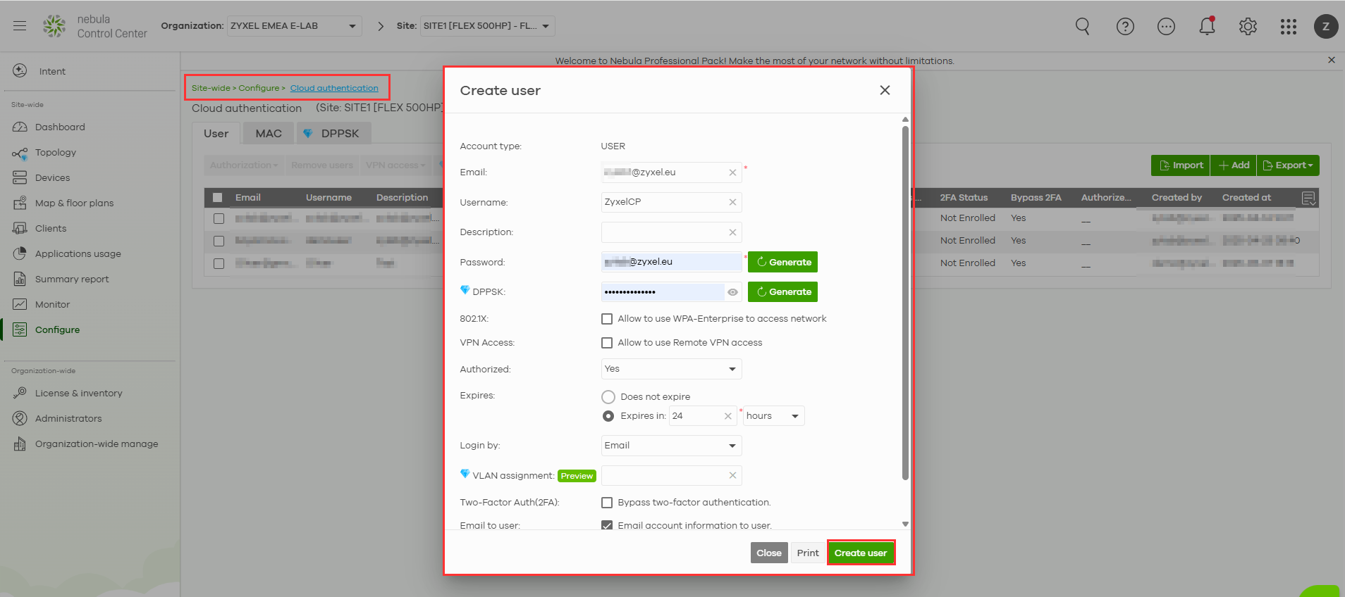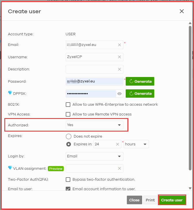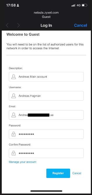Because we have selected the strict "Self-registration, before we need to manually authorize the users in Nebula Cloud Center before the guests can enter.
