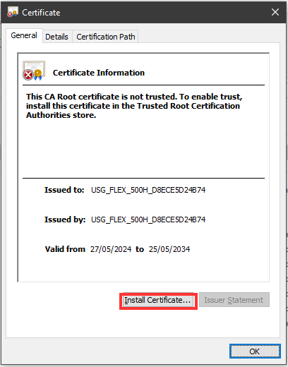 Note: Once the certificate is installed, browsers will trust the FLEX device during SSL inspection, and security warnings will no longer appear for HTTPS traffic.