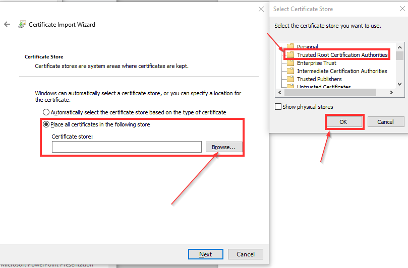 Click "Browse", then choose "Trusted Root Certification Authorities".
