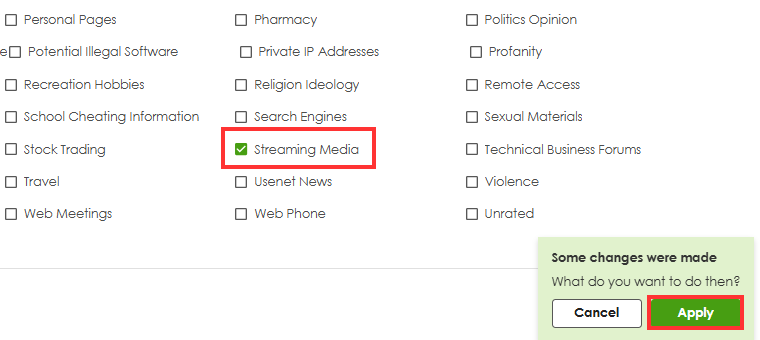 - Tick Streaming Media category in Managed Categories, and click Apply.