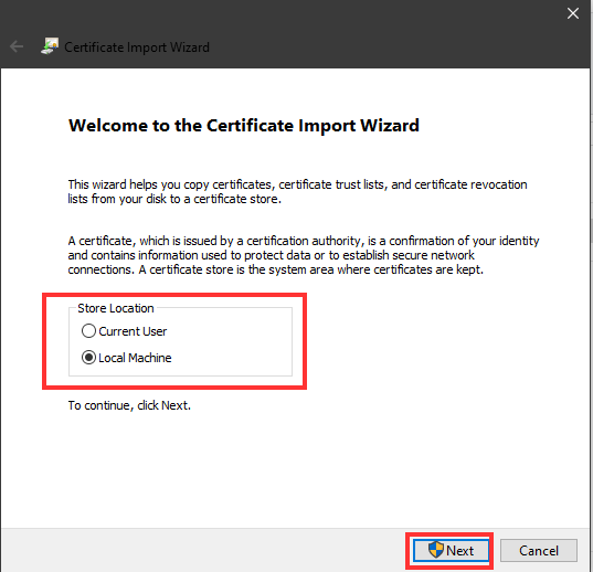 - "Local Machine" – if the certificate should apply to all users on the computer (administrator rights required).