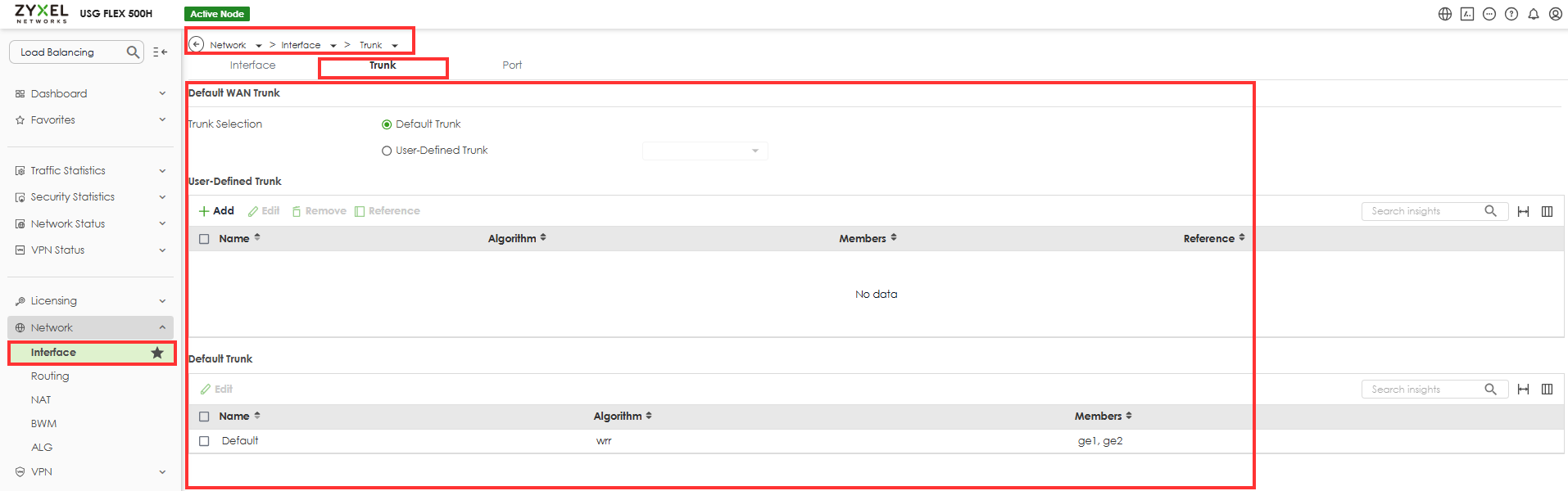- After creating a user-defined trunk, go to the Network section and select Interface.