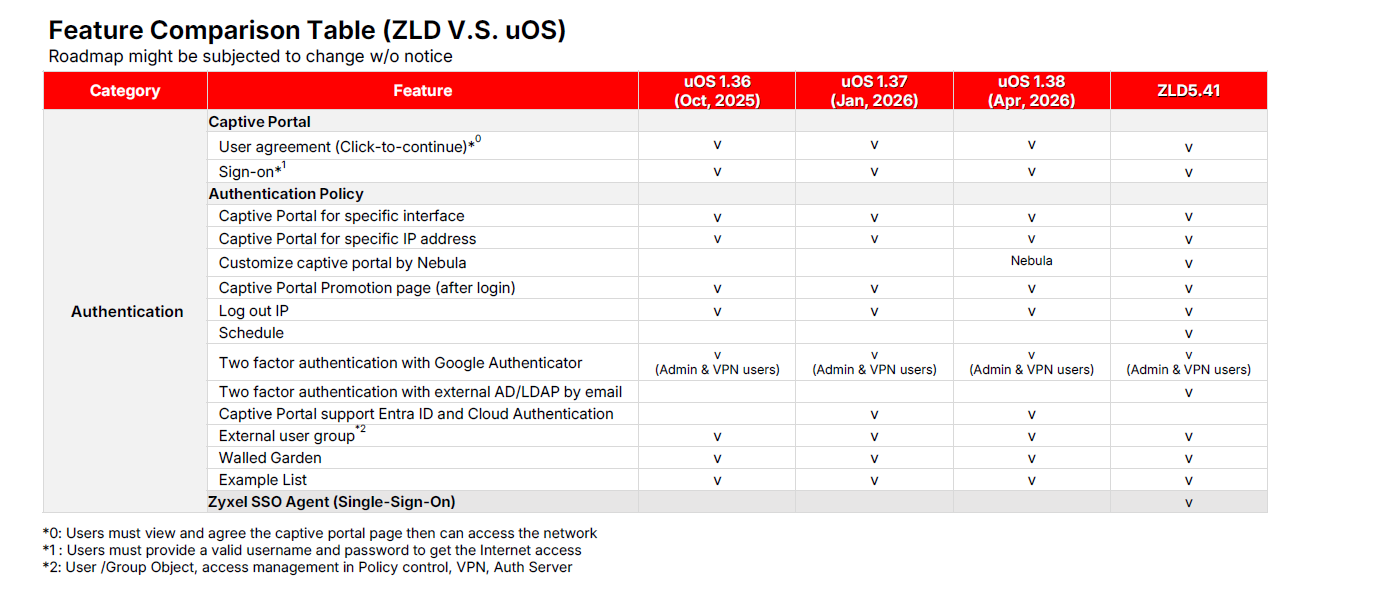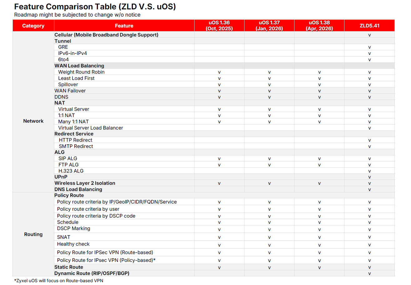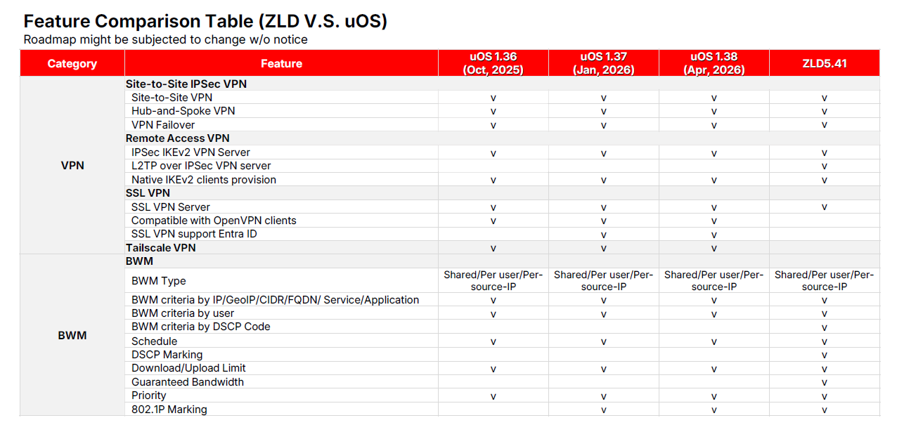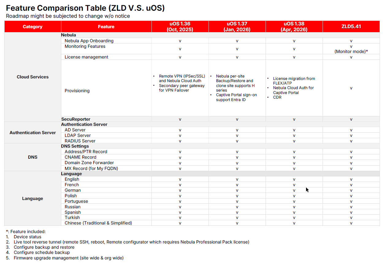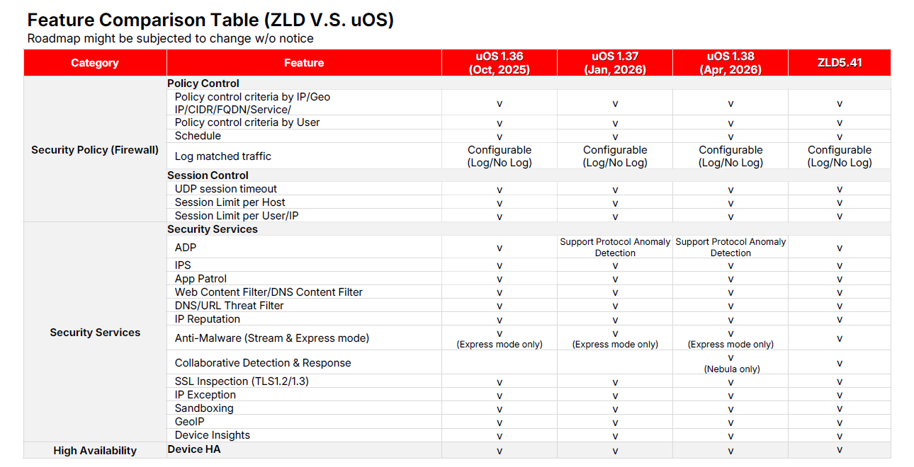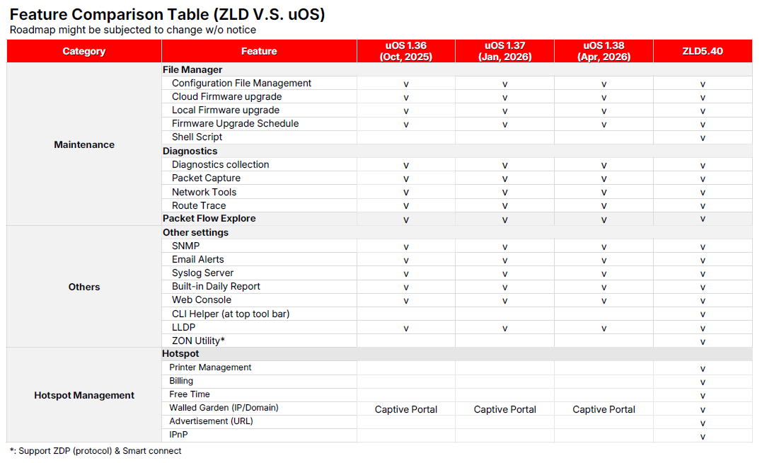 Feature Comparison Table (ZLD V.S. uOS Operating System)