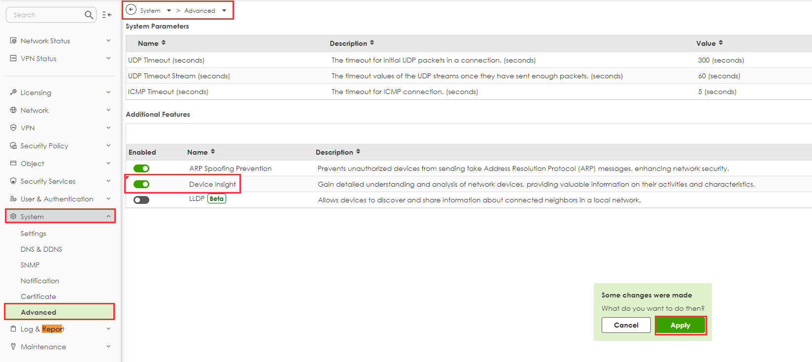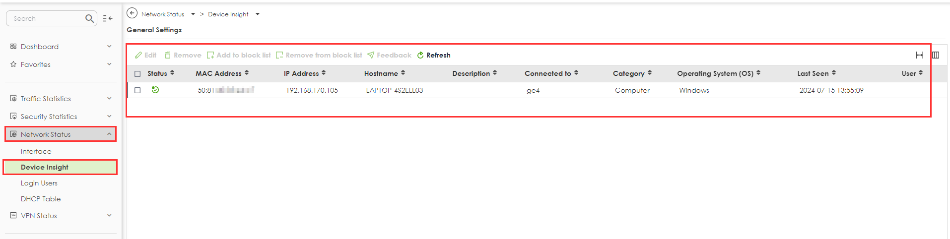 Once the Device Insight feature is enabled, you can now check the device which are connected to the USG FLEX H Series Firewall.