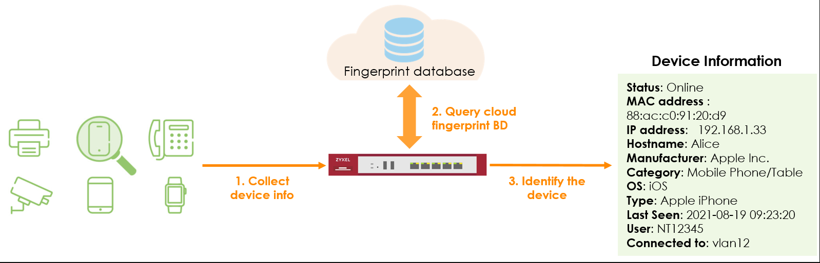 Note: To collect clients’ information using Device Insight, the clients must be in the same IP subnet in the LAN/VLAN/DMZ networks behind the Zyxel Device. Information from clients that are in different IP subnets in the LAN/VLAN/DMZ networks might not be collected correctly as traffic must pass through another router or a layer-3 switch to the Zyxel Device.