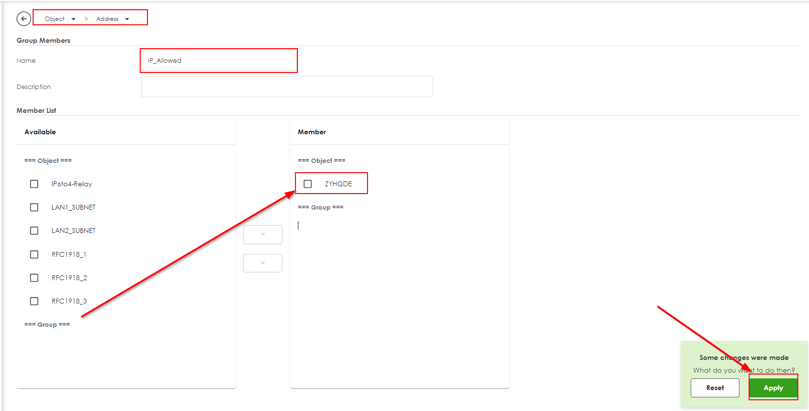 Go to > Object > Address > Address Group > Add
