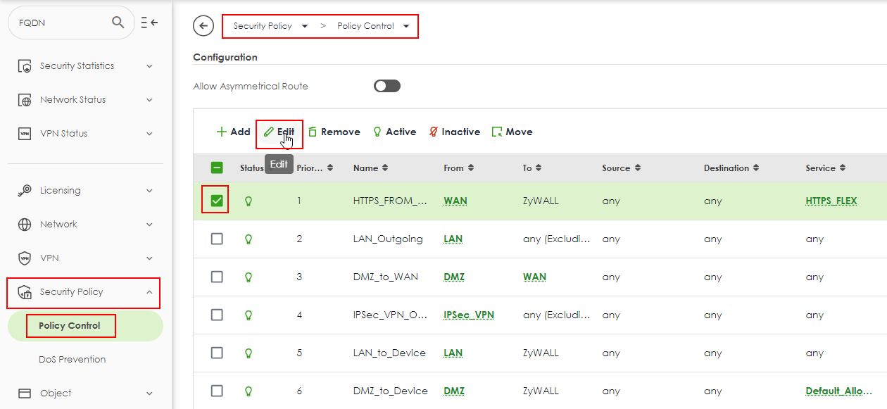 - Select the desired policy and click "Edit"