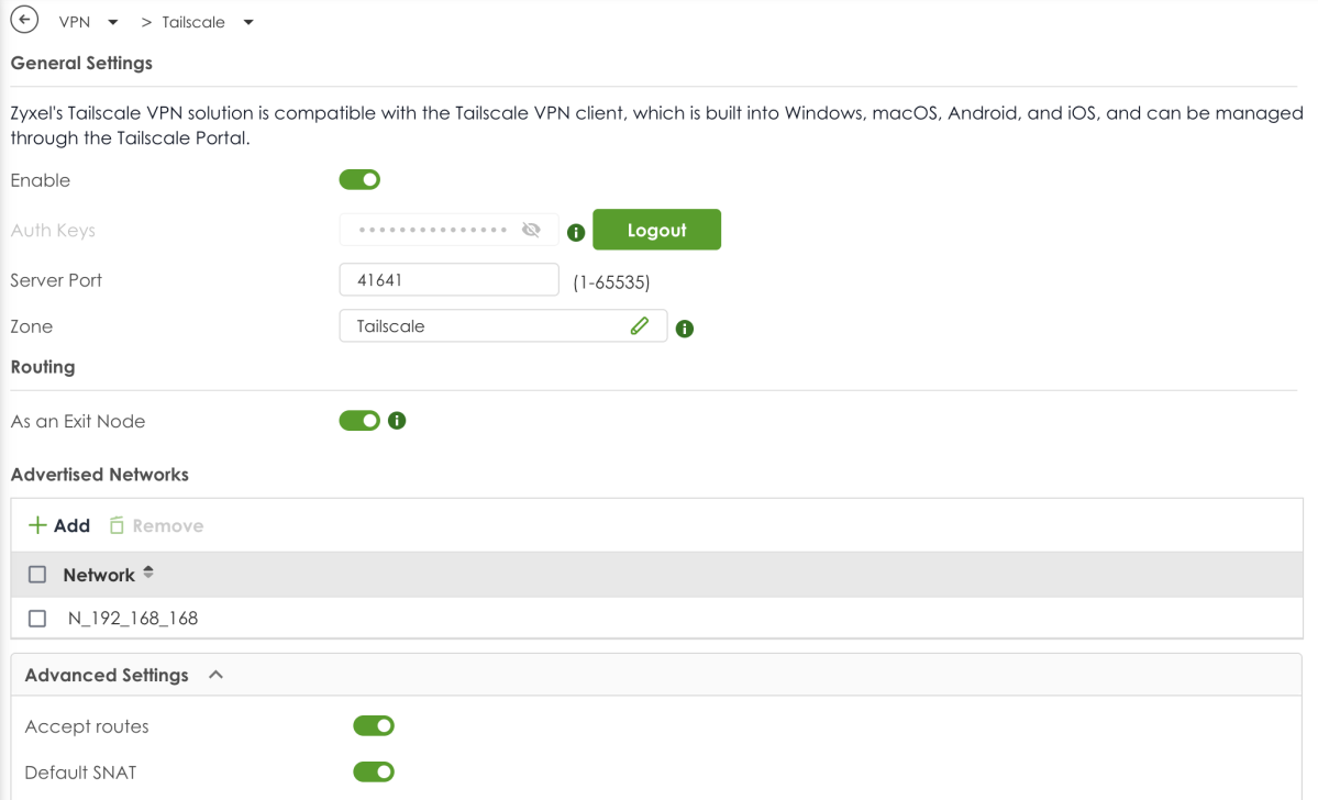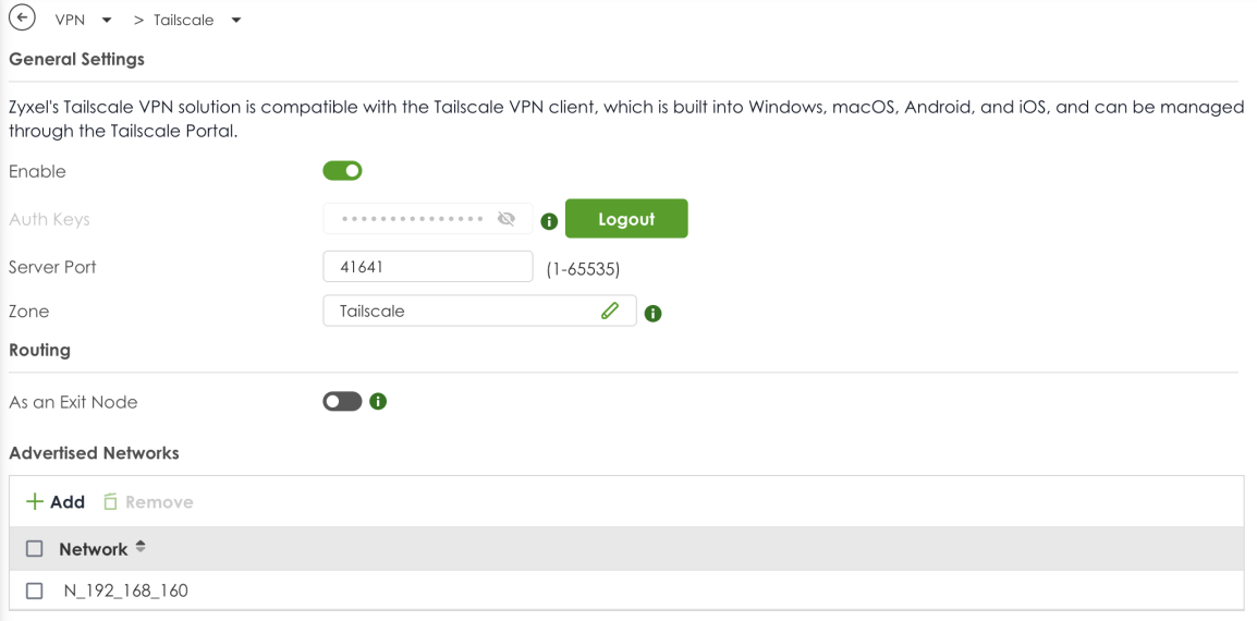 Zyxel's USG FLEX H Series firewalls now support integration with Tailscale, a third-party VPN solution that enables secure, encrypted, peer-to-peer connections across devices and networks. This provides users with a flexible and scalable VPN option in addition to Zyxel’s built-in VPN capabilities.