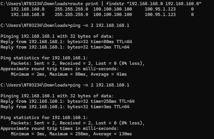 Now, Client A know how to route traffic and able to access 192.168.168.1 and 192.168.160.1.