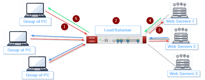 - Load Balancing Decision: The request reaches the firewall which then employs a predefined load balancing algorithm to determine the most suitable server from a pool (for instance, Server 1, Server 2, Server 3). Factors considered in this decision might include server load, response time, or session persistence requirements.