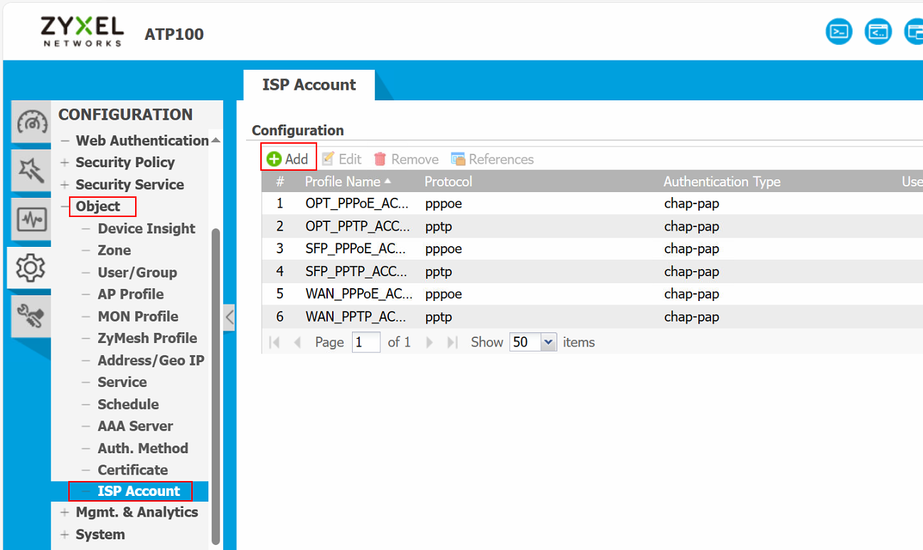 Go to Configuration > Object > ISP