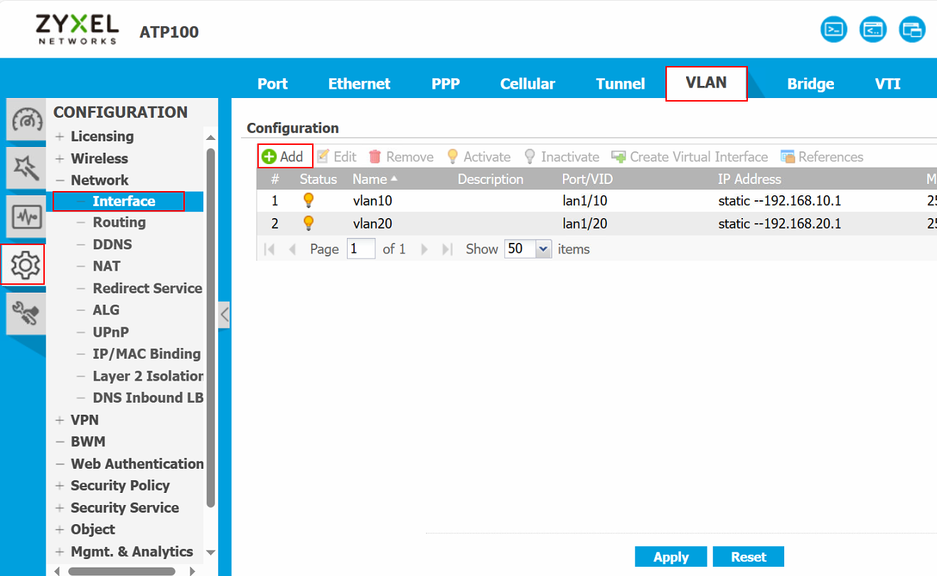 Go to Configuration -> Network - > Interface> VLAN