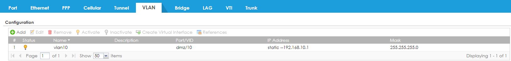 Configuration > Network > Interface > VLAN > Add