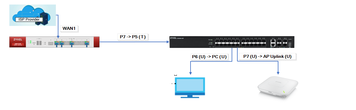 Settings are done. For the test, we connected a Zyxel NWA110AX access point to port 6 and connected a PC to port 7.