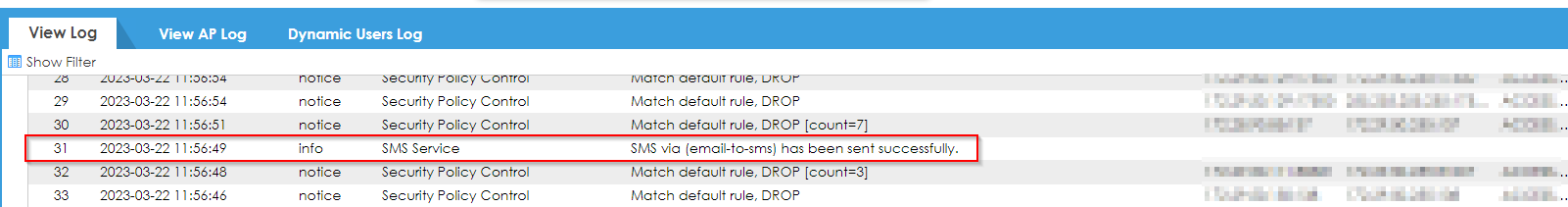 In case of the successful sending of a message in the logs of your device, you will see the following entries: