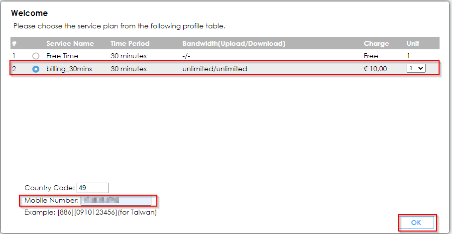Choose the "profile" you need, fill in the "Mobile Number" and click "Ok"