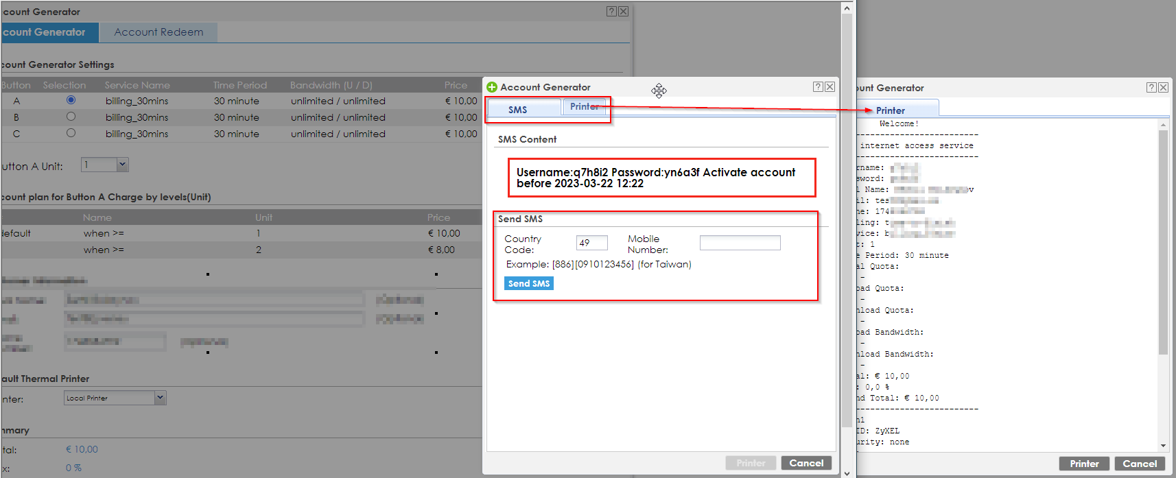 Next, we will look at how to generate an account for the customer and options for transferring data to access the Internet by printing a receipt or sending data via text message.
