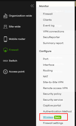 a) Navigate to Firewall -> Configure -> Wireless