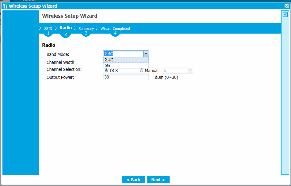 d) Select DCS for the best result and the Output Power to 30 in order to maximize the WiFi reach