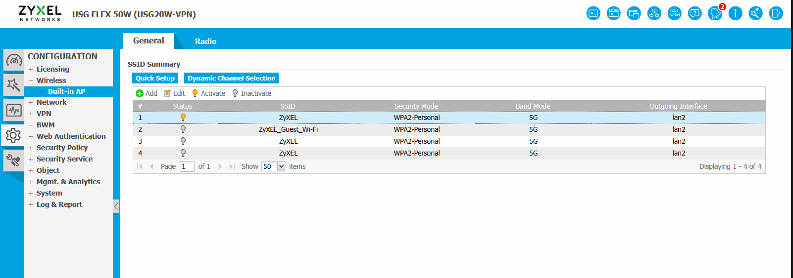 Navigate to Configuration -> Wireless -> Built-in AP -> General