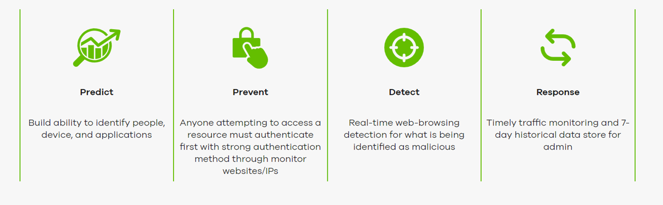 The Astra App is cloud-based, and an engineless endpoint security feature which means that nothing needs to be hosted for the Astra service to work. It can predict if E-mails have been leaked where you as an administrator get a notification. It can also block unwanted traffic by monitoring what websites and content the users are looking at, where malicious and phishing websites can be blocked. Along with real-time web-browsing detection, the App also provides analyzing and visibility for the administrator with 7-day historical data.