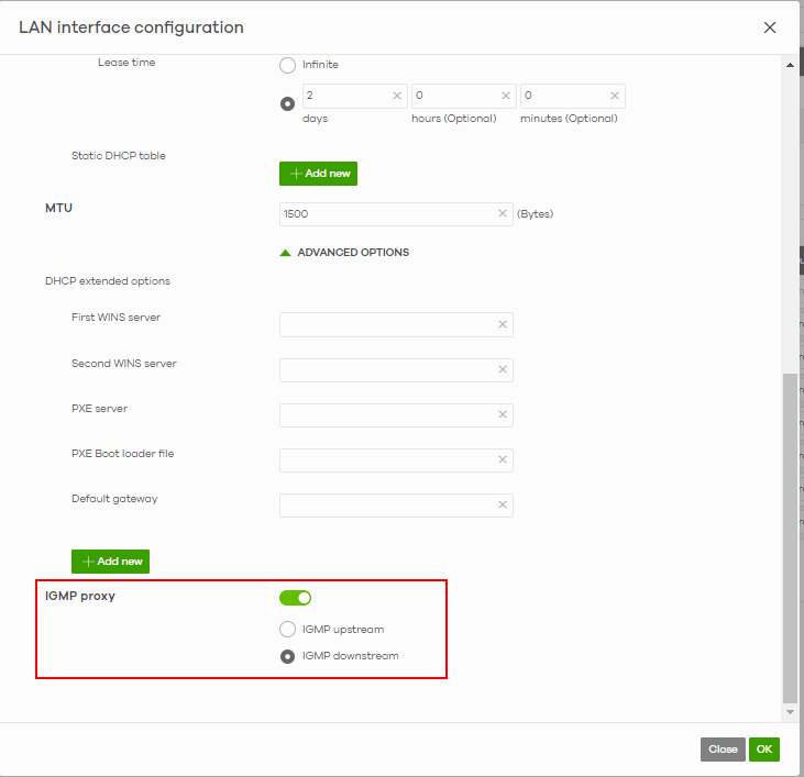 Edit your LAN or VLAN interface and scroll down to enable IGMP proxy and choose IGMP Downstream here.
