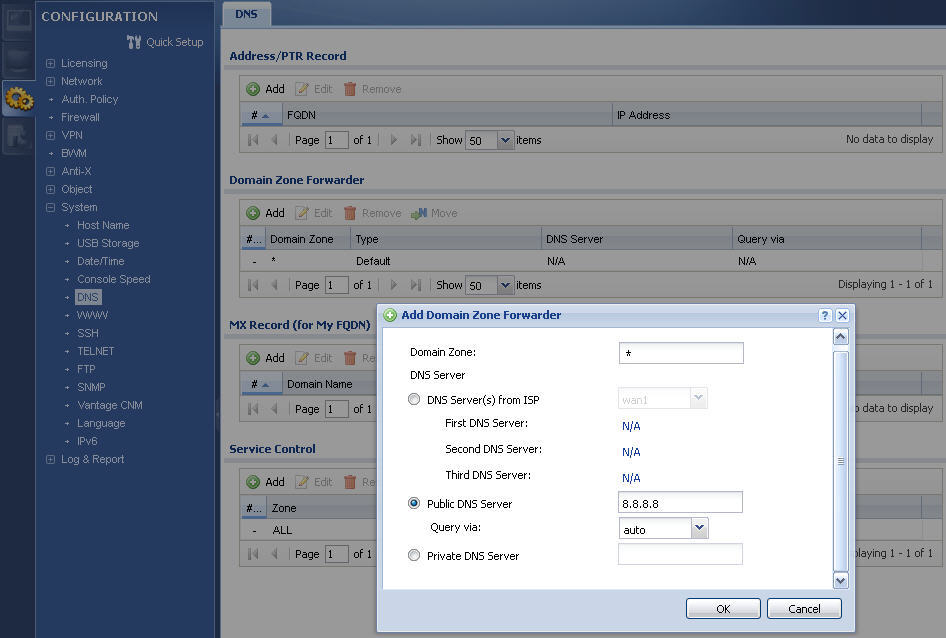 - In the Domain Zone Forwarder section, click Add to create a new entry.