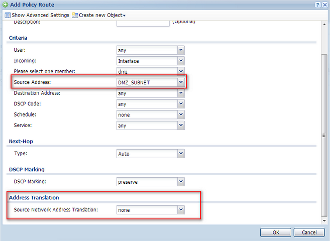 1. Navigate to Configuration > Network > Routing to configure the Policy Route policy without SNAT for network packets from a DMZ subnet.