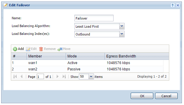 As configured, the USG uses only the active interface for Internet access. Only when the previously established on the WAN1 interface connectivity test detects an interruption, the USG uses the passive set interface WAN2.