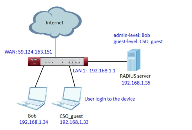 By following this guide, you can assign different user types for RADIUS group accounts according to their privilege, just like the local users. ZyWALL USG will then get the user type, lease time, and re-auth time from the RADIUS server once the logged-in user is authenticated, which used to control access of services in the USG.