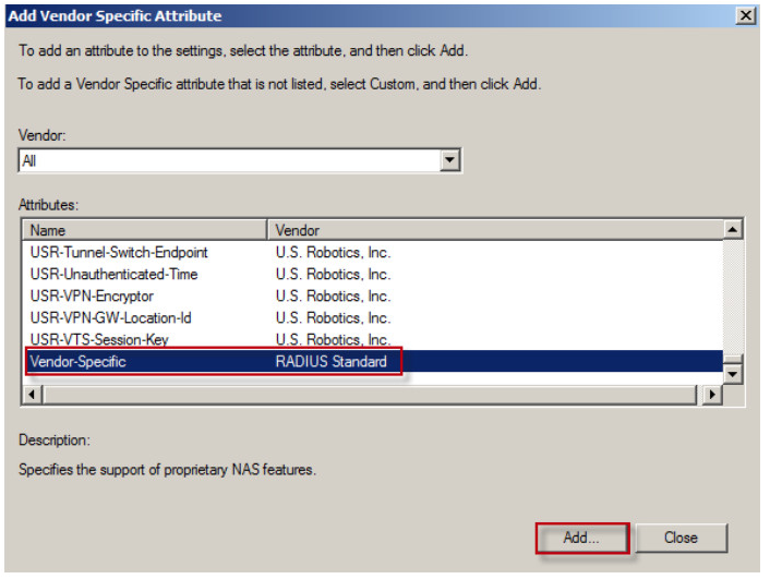 4. Select Vendor-Specific and click on the Add button.