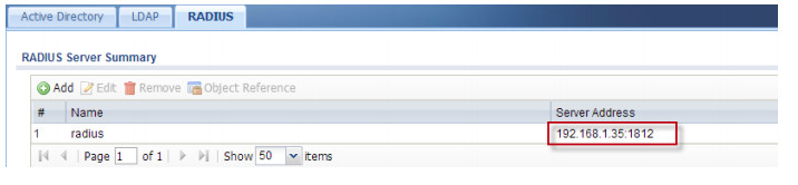 3. Go to CONFIGURATION > Object > AAA Server > RADIUS and configure RADIUS server on the USG