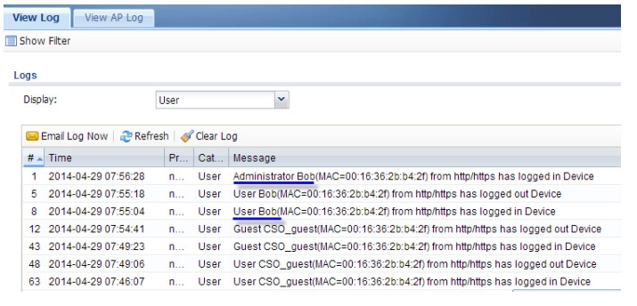 4. Use the guest-level account “CSO_guest” and admin-level account “Bob” to log in to the device respectively
