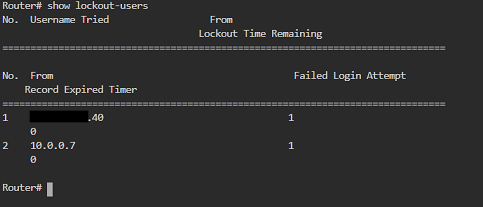 If you use the show lockout-users command, you will not only see the locked out users, but all failed login attempts. Please look at your